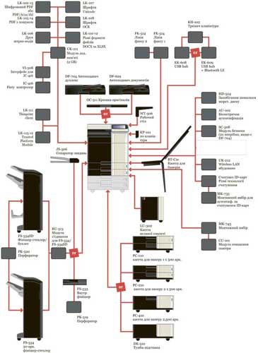 ineo+ 258 з автоподавачем паперу дуплекс(DF-704), вихідною касетою (OT-506) та касетою для паперу (PC-210)